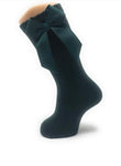 Dark green knee-high socks with grosgrain socks on the side. Made in cotton.