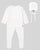 Three-piece white knit set for baby boys and girls. It includes a long-sleeved sweater, footies and a bonnet. Knitted in soft cotton, the top features an intricate detail and is...