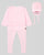 Three-piece pink knit set for baby girls. It includes a long-sleeved sweater, footies and a bonnet. Knitted in soft cotton, the top features an intricate detail and is adorned with...