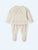 Unisex newborn knit set. Available in light beige and light yellow. It includes a long sleeve sweater with openwork details and matching footies that are elasticated around the waist. The...