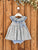 Cute cotton dress for toddler girl. Made in a blue floral fabric, this sleeveless dress features white and blue gingham fabric details in the double ruffled collar, a frontal bow...