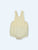 Baby romper made in seersucker white and yellow fabric. Made in lightweight cotton, it is elasticated around the back and leg cuffs. It fastens with buttons on the cross-back straps and between the legs.