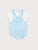 This dungaree set for baby boys includes a white cotton short-sleeved shirt and white and blue gingham dungarees. The shirt fastens with buttons on the back. The lightweight dungarees fasten on the front with buttons and in between the legs for easy changes. They feature a frontal pocket with a button.