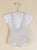Dungarees set for baby boy. The short-sleeved, white collarless shirt is made in a lightweight linen and it fastens with 2 buttons on the front. The sage green and white...