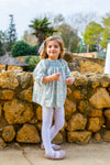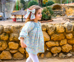 This hand-smocked bloomer set is made in a pastel pink, blue and yellow floral print fabric. It features beautiful blue and yellow smocking around the neckline and long elasticated sleeves....