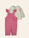 Really cute 2-piece dungaree set, it includes a blouse in a beautiful floral pattern, and a dark pink corduroy dungaree. The blouse has long elasticated sleeves and an oversized Peter...