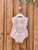 Cute dungarees set for baby girl. The sleeveless white plumeti blouse has no collar, and it fastens with buttons on the back. The dungarees are made in a pink gingham fabric with a frontal pocket in a contrasting pink floral fabric. The dungarees fasten with wooden buttons on the straps and in between the legs.
