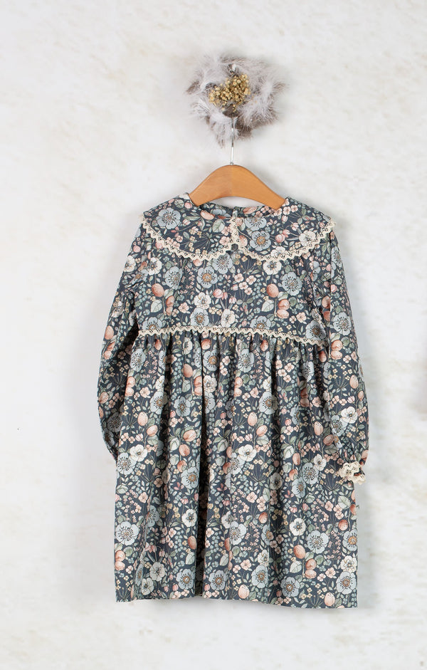 Beautiful blue cotton dress for little girls, made in a charming floral print in soft shades of light blue and pink. Made in lightweight twill, it has a rounded collar,...
