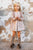 Pastel pink dress for little girls in a cute farmhouse print. The dress has frills on the front in  a contrasting pink gingham fabric. The long sleeves have elasticated frill...