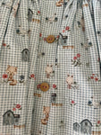 This dress is made in a cute sage green gingham fabric with animal motifs. It has frontal pockets and a Peter Pan collar with a ruffle in a contrasting floral...