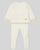 Two-piece cream knit set for baby girl. It includes a long-sleeved sweater and footies. Knitted in soft cotton, the top has beige lace trims and a bow on the front...