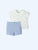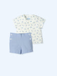 Cute toddler boy set. The collarless, short-sleeved white shirt features a cute seals print. It fastens with buttons on the front. The blue shorts are elasticated in the back and...