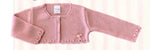 Short pink knitted cardigan. It fastens with one single button on the front and is adorned with a tiny pink bow. Pair it with the Capri pink dress and sets...