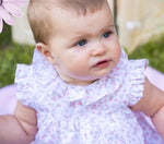 Baby girl dress made in lightweight cotton, this is a great everyday summer dress. Made in a white and pink floral print, it features a ruffled collar and sleeves, and...