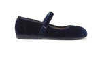 Classic Mary Janes in navy velvet. They come with thin adjustable velcro straps and durable non-slip rubber sole for comfort and safety. Hand-crafted in Spain.