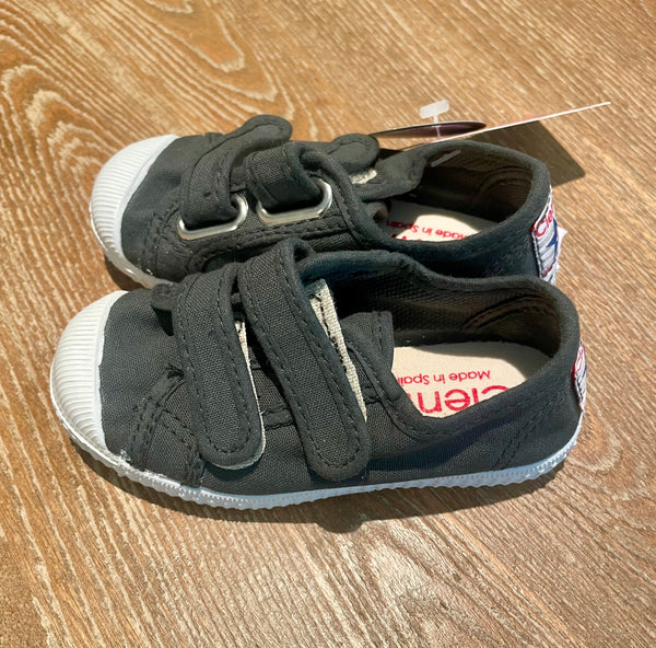 This canvas style features double hook-and-loop closure straps, rubber cap toe and non-slip rubber outsole. Easy to wash.