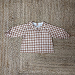 Baby boy dungarees set, it includes a shirt and knitted dungarees in a tile color. The shirt is made in a tile and ivory gingham fabric. It has a Peter...