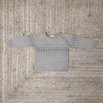 Brown sweater for toddler boys, it has a blue and red pattern on the chest and sleeves. It has button fastenings on the shoulder. Mebi is a small fitting brand,...